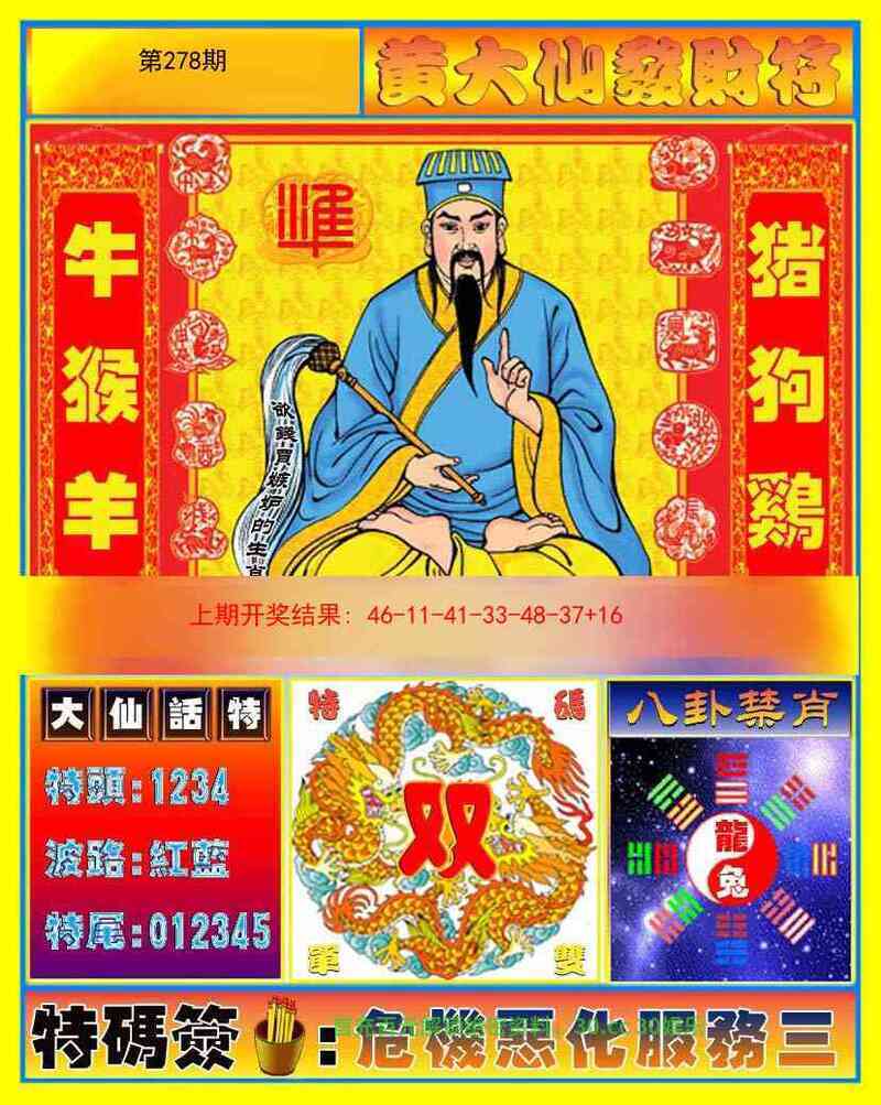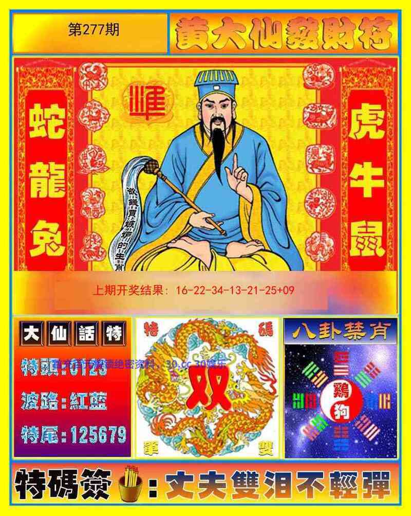 281期:密门仙机/心水特码信/黄大仙天书/波色生肖诗/生肖歇后语