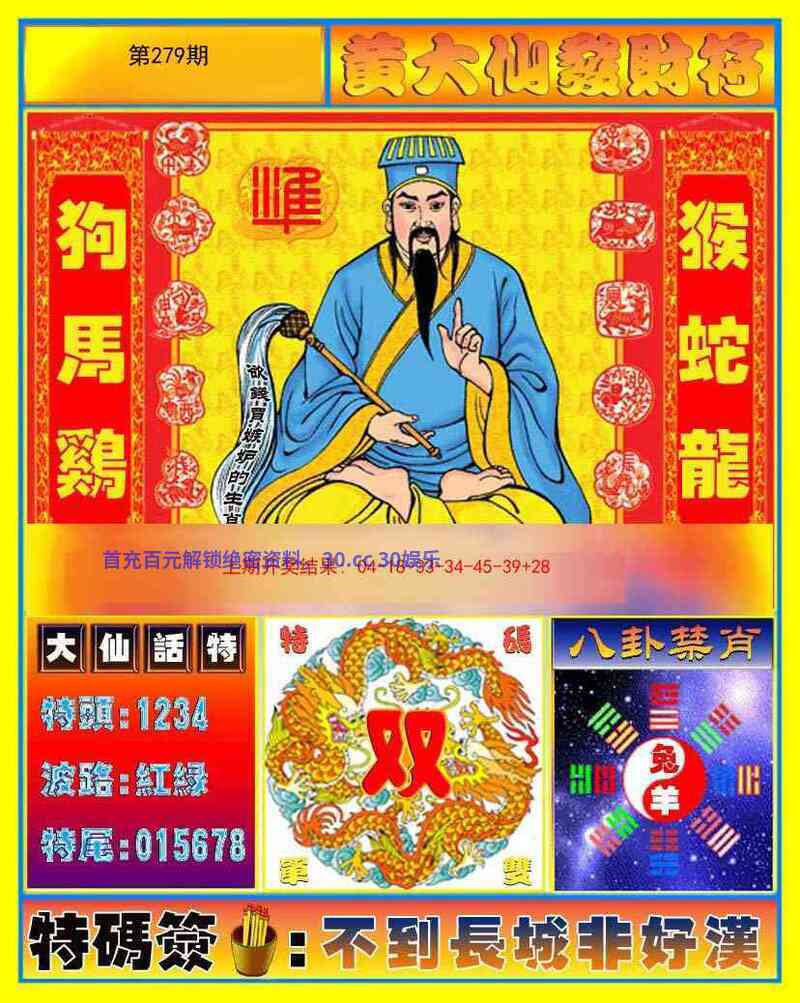 281期:黄大仙心水/简单好下注/台湾玄机诗/港台澳七肖/必中人物